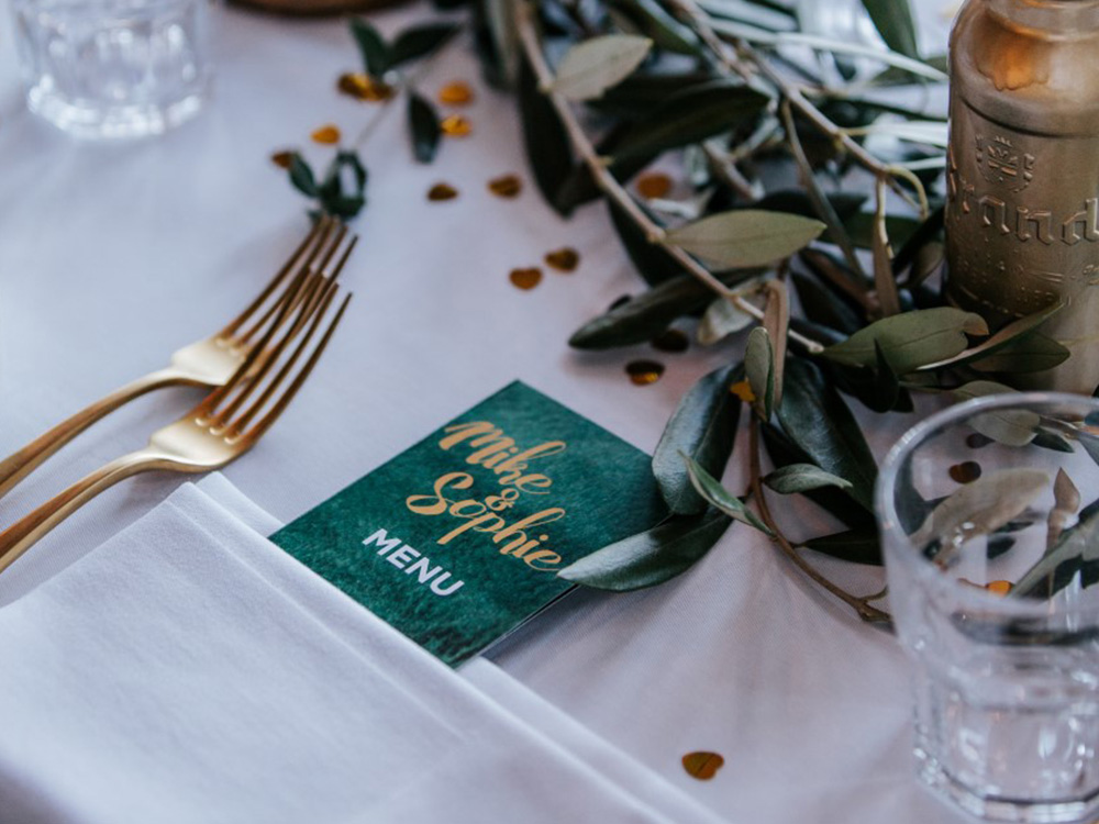 Mike en Sophie hadden als wens om Chef in Huis het diner te laten verzorgen op de mooiste dag van hun leven. Wij vonden het dan ook een hele eer om een mooi 4 gangen bruidsdiner te serveren voor hun 45 dierbaarste vrienden en familie. Het sitdown diner had als thema goud, groen & wit, een leuke uitdaging. Ons team heeft in het gehele diner, tot en met het dessert, deze kleurencombinatie laten terugkomen. Het was een prachtig diner en we wensen het gelukkige paar een fantastische toekomst samen.